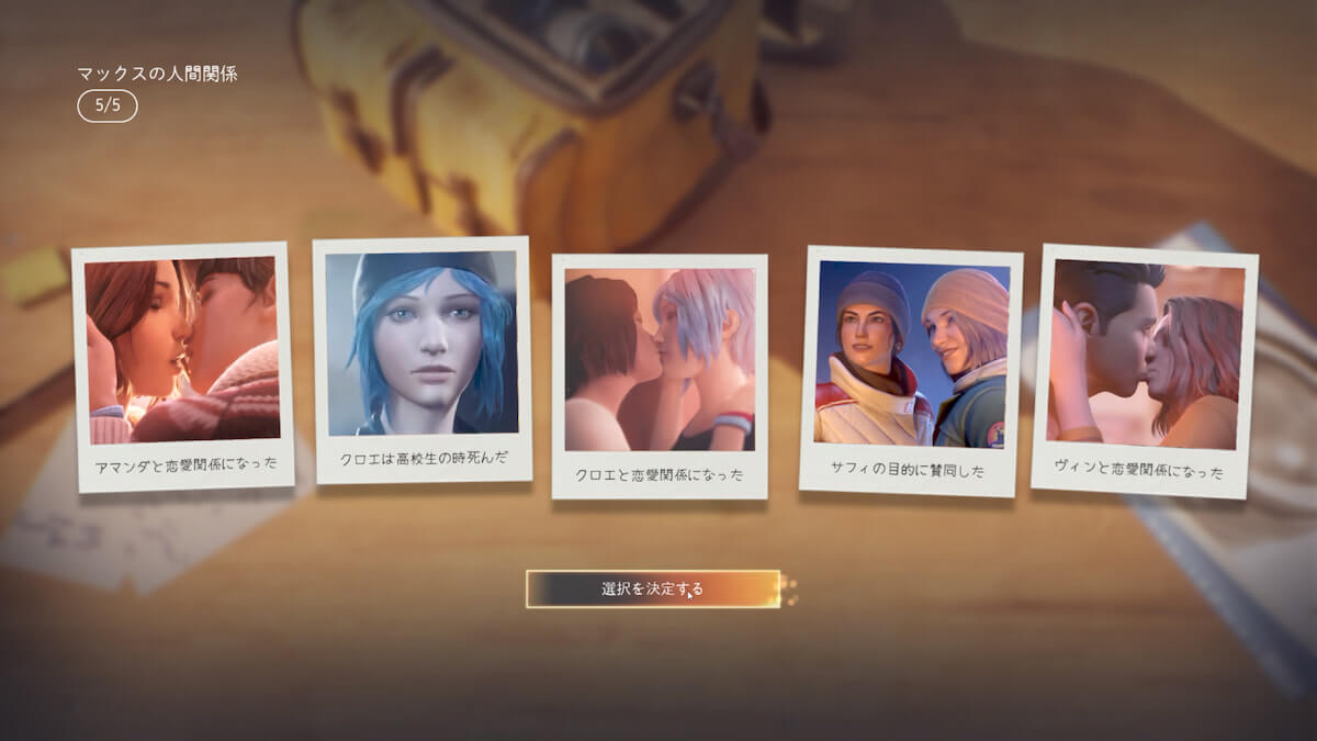 ちなみに筆者はマックスの人間関係を画像のように設定(すべて左の選択肢)、2周目では逆の選択肢にする予定です。