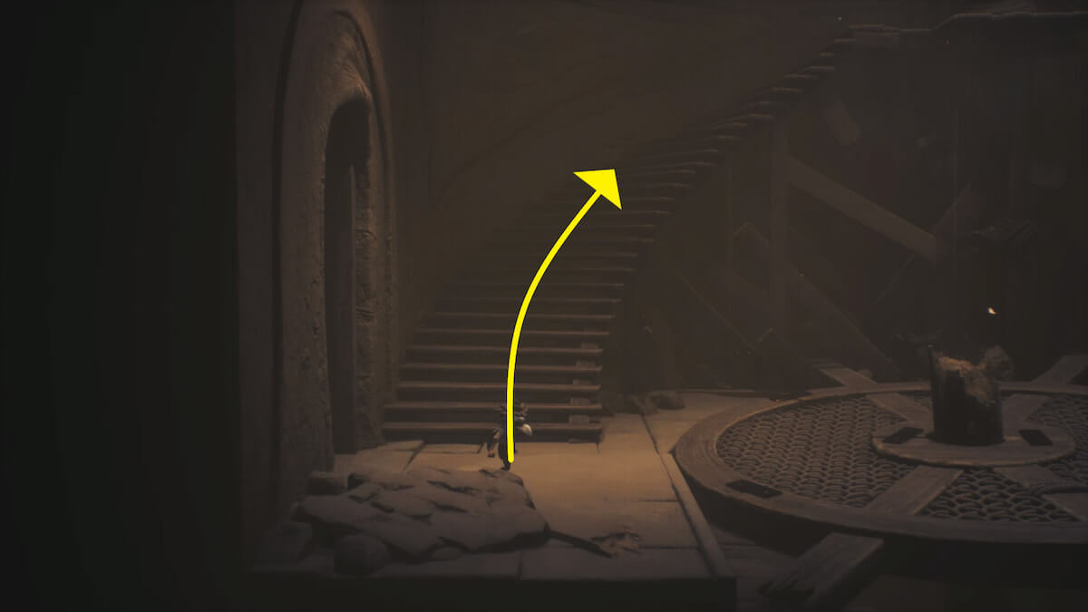人形4があった部屋から出て右側に進み、螺旋階段を下ります。