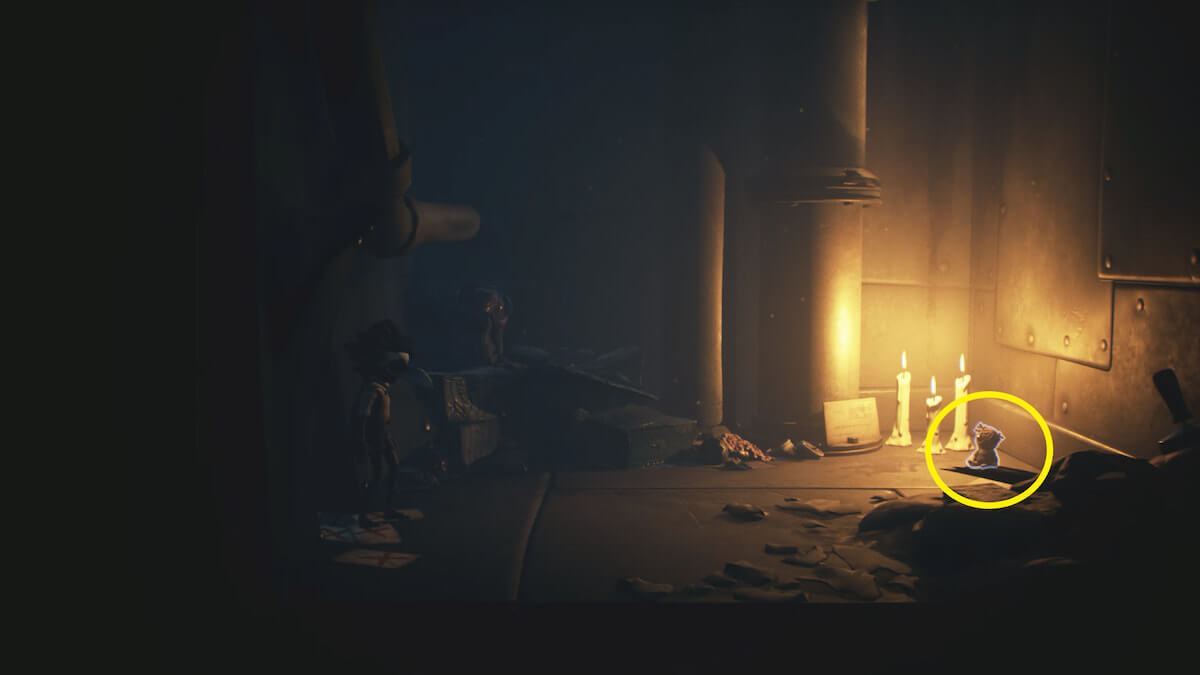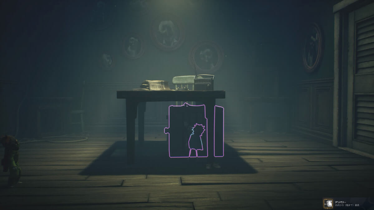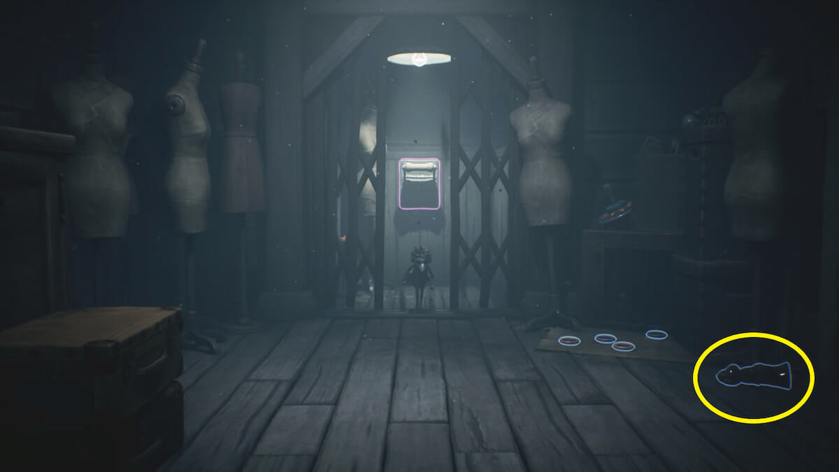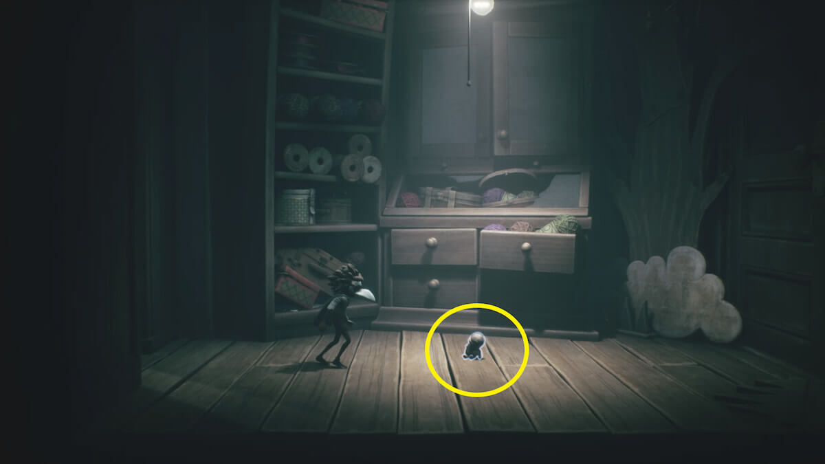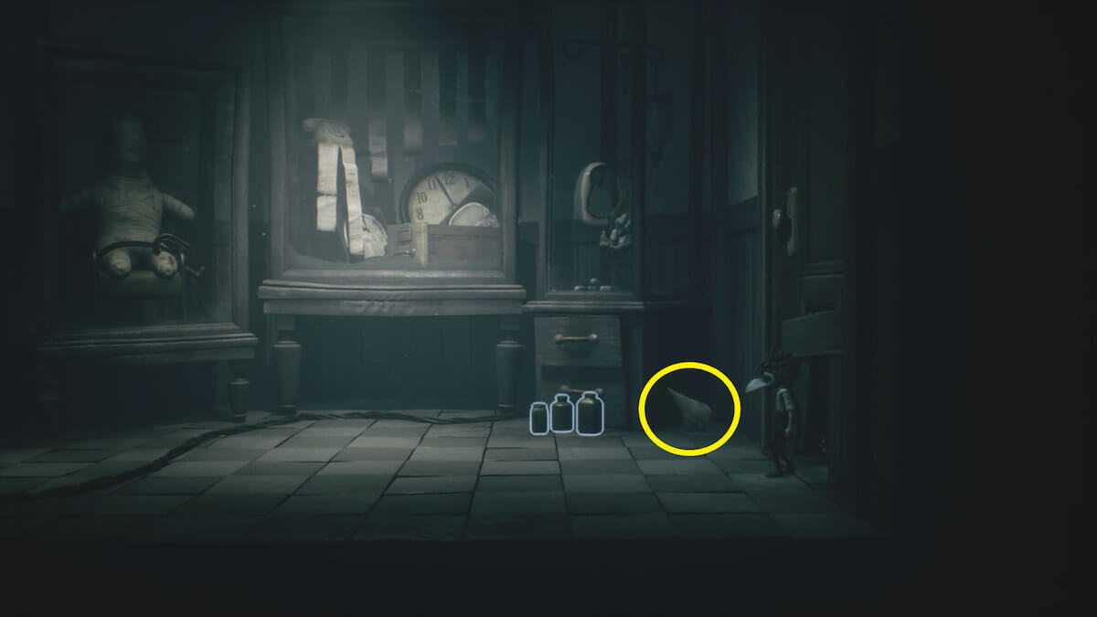 左側の階段を下りて部屋に入ると、奥の物陰で人形4/10が見つかります。