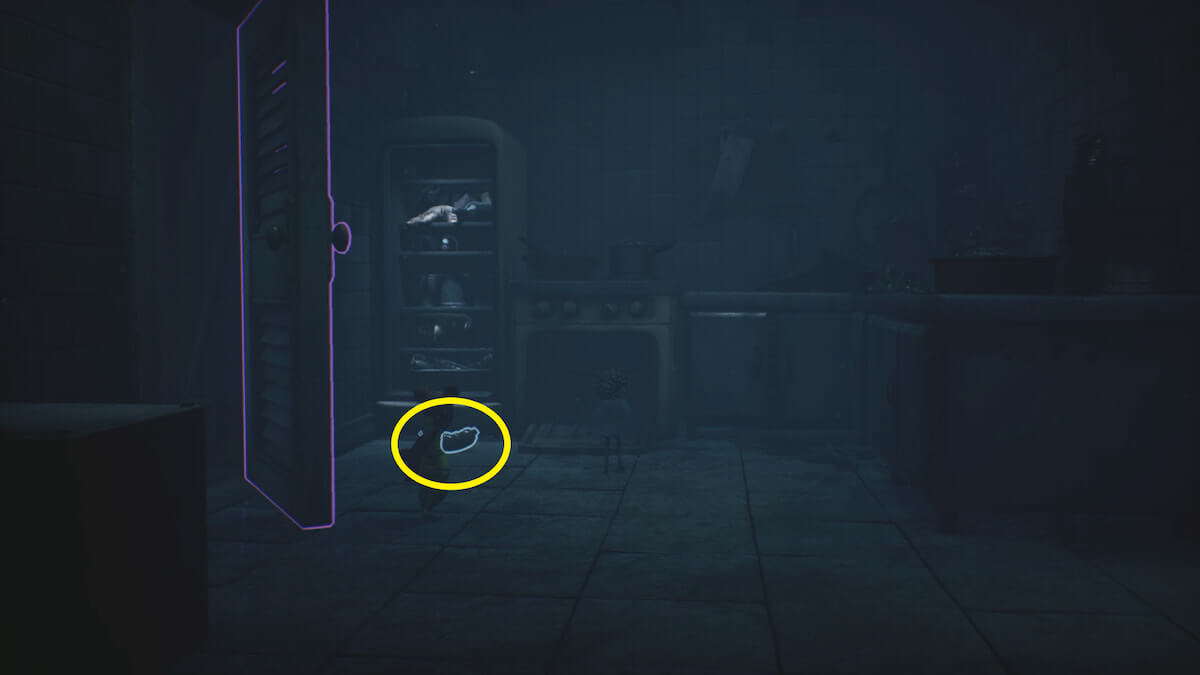 牢から脱出したら、右側へ進み、冷蔵庫の前に落ちている食べ物を拾います。拾った食べ物を隣の部屋で捕まっているノームの前まで運ぶと、トロフィー「デリバリー」を獲得できます。