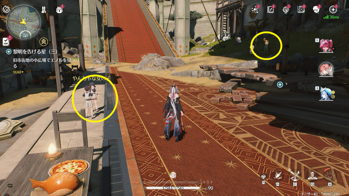 - 画像上〇で任務「栄光の果てで見た大空・塔の守り人」クリア