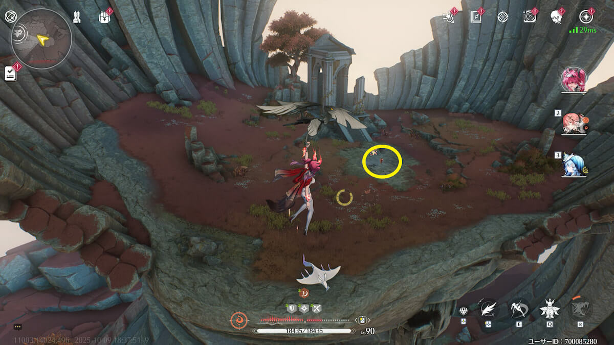 - 画像左〇で任務「栄光の果てで見た大空・試練の地」クリア