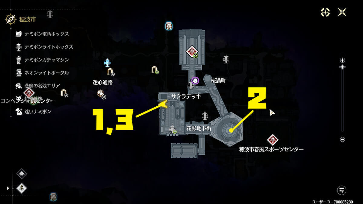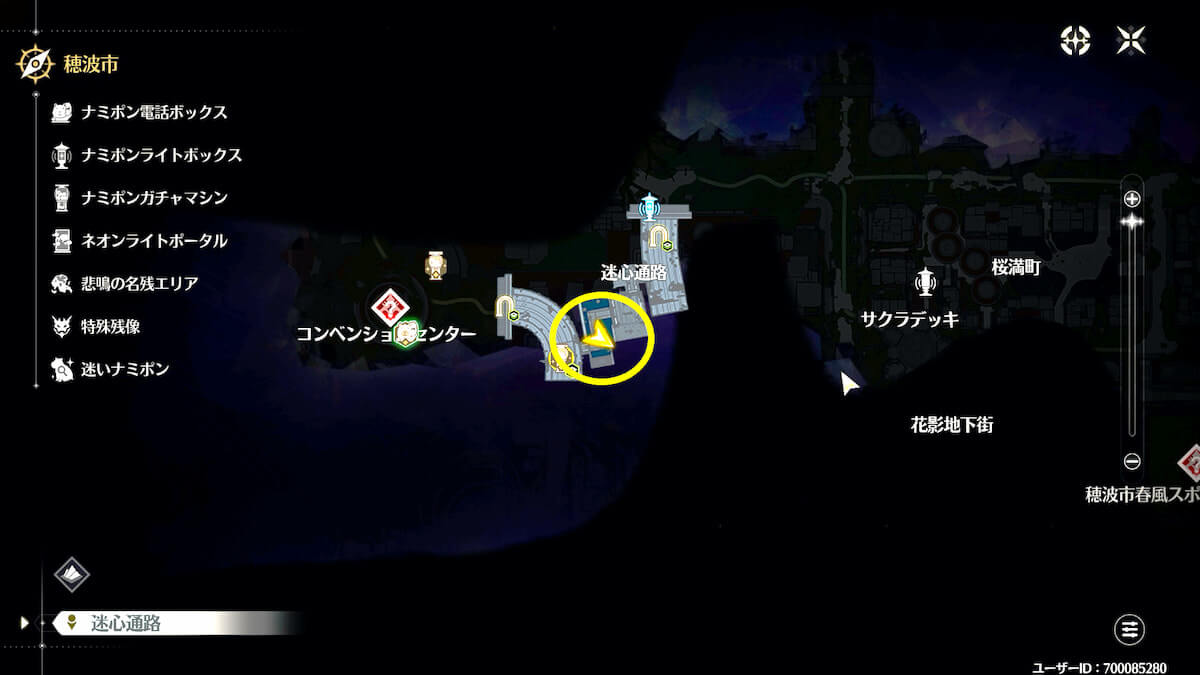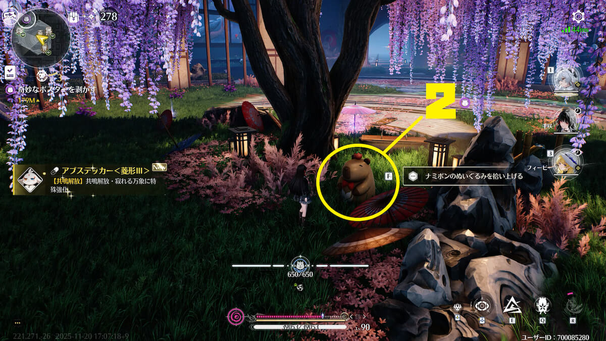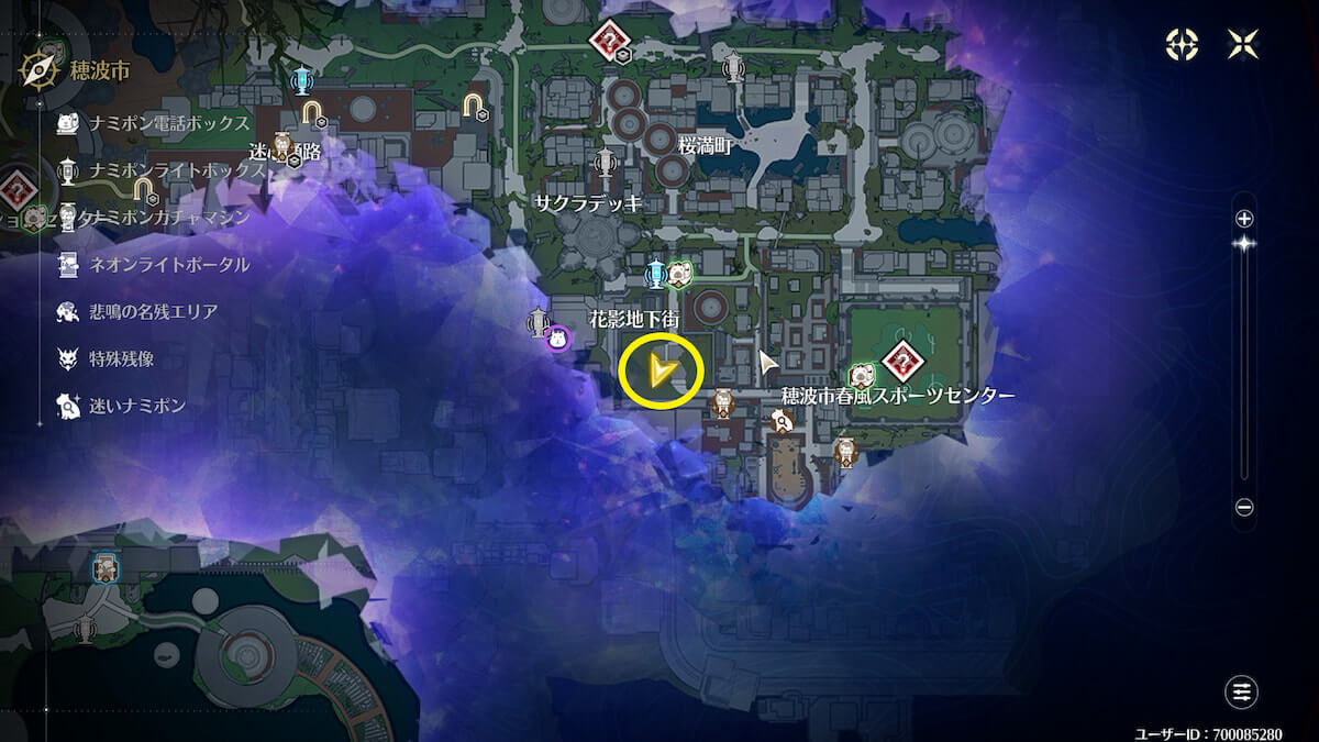 花影地下街で女の子に話しかけた後、ナミポンのぬいぐるみを入手して女の子がいた場所に置くと獲得できます。