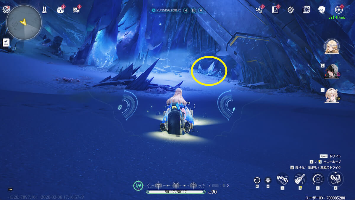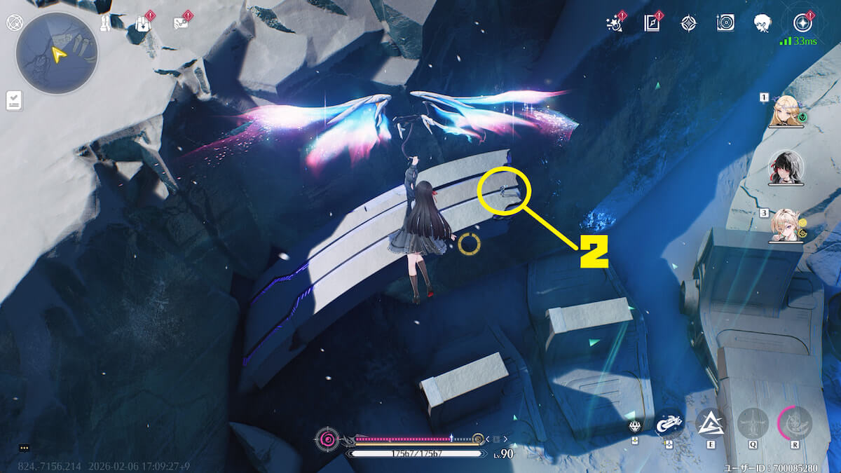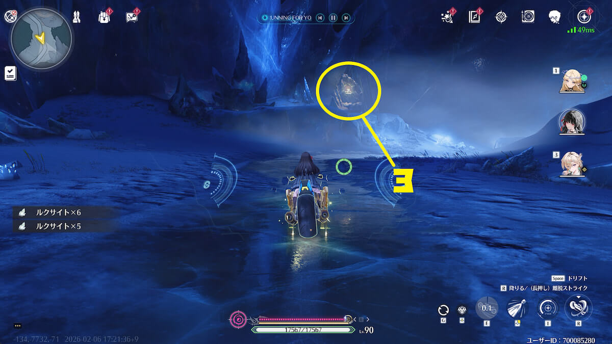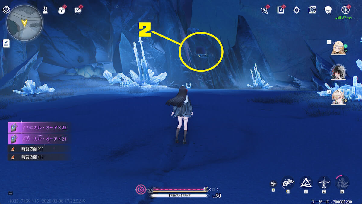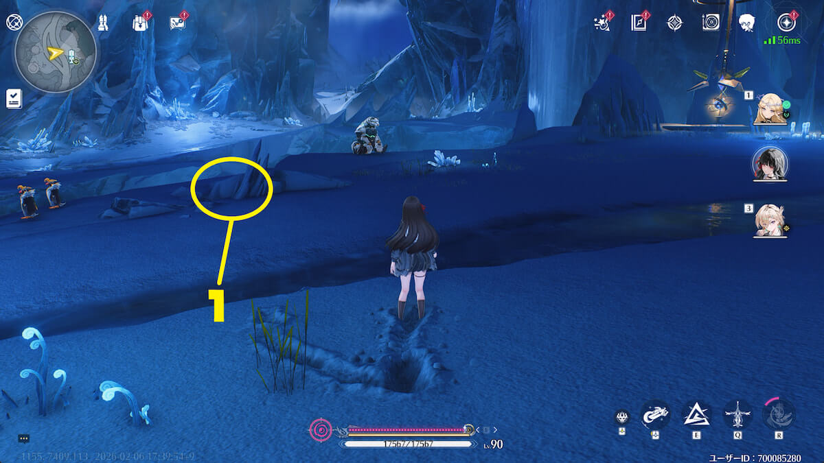 - 音骸顕現・グローモスで氷を破壊し、測定器を起動