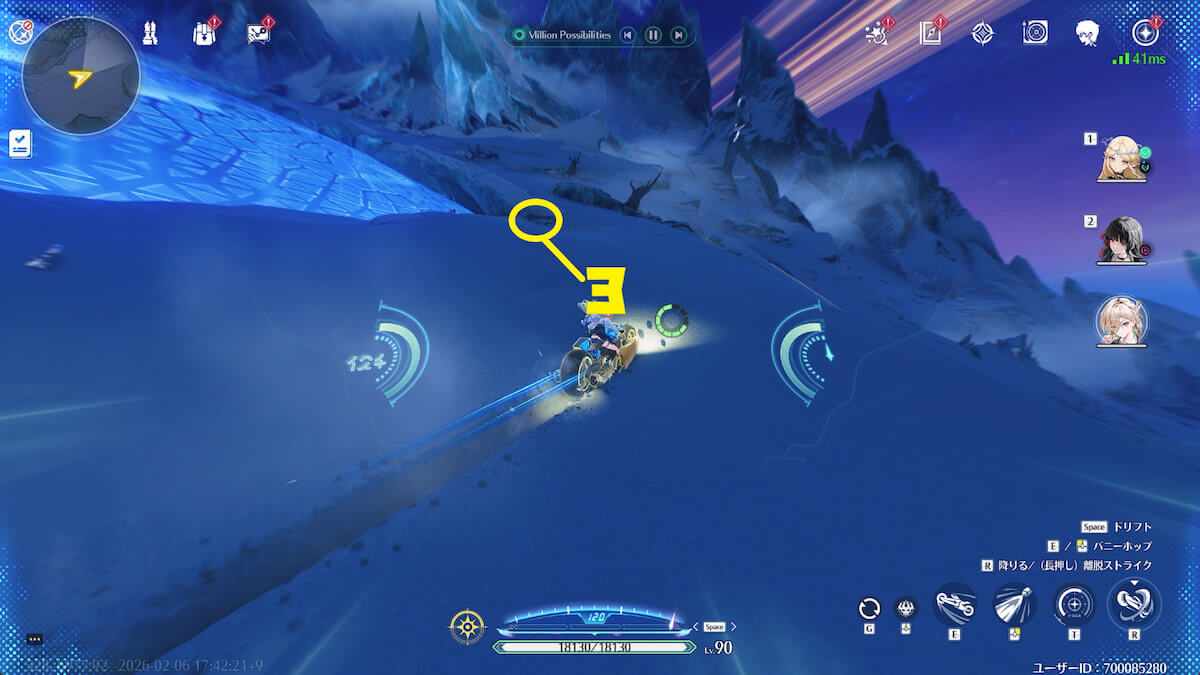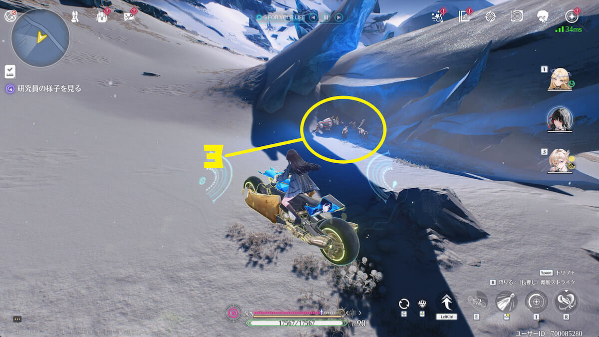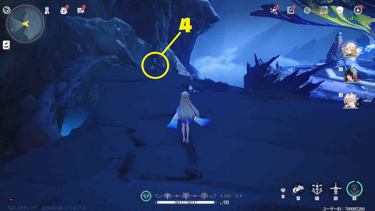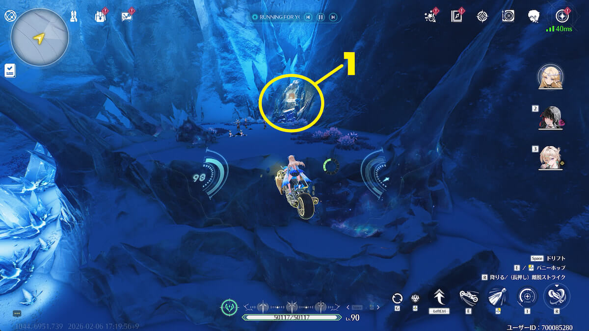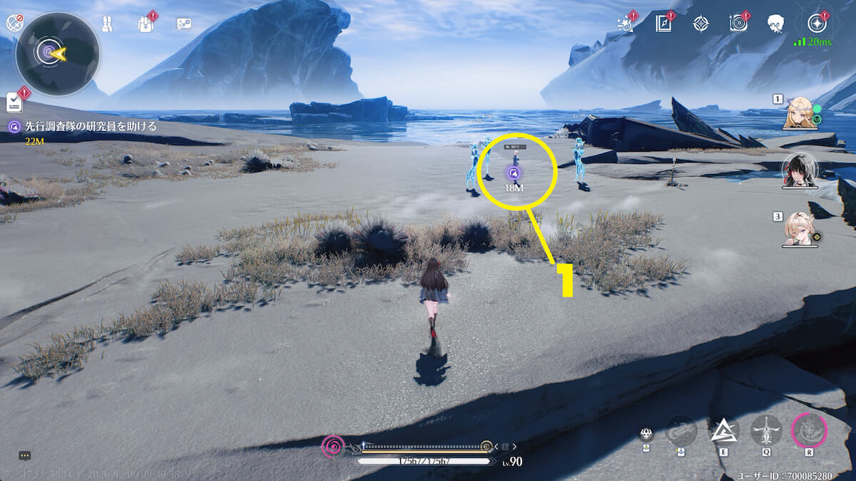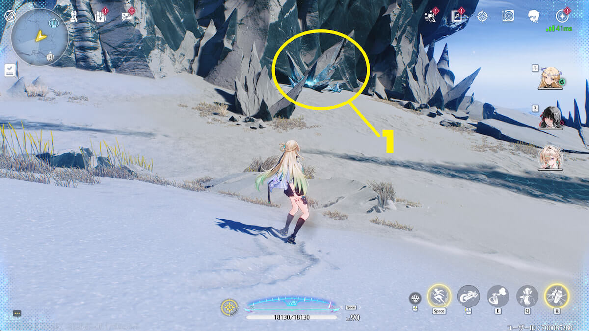 - 音骸顕現・グローモスで氷を破壊し、測定器を起動