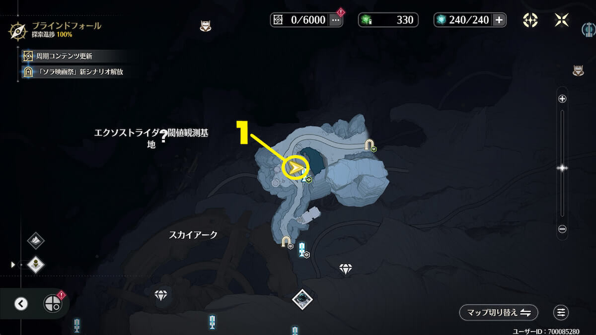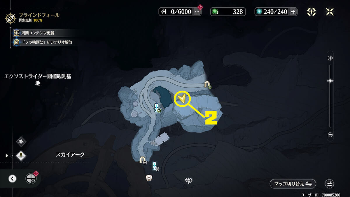「ブラインドフォール」北東の地下にある氷を音骸顕現・グローモスで破壊し、太陽の精霊を助けると、実績を獲得できます。