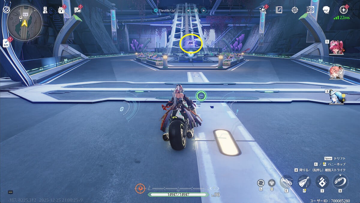 マップ画像1番の位置。「カスケード・コリドー」西の道路にエンドボイスエピソードがあります。