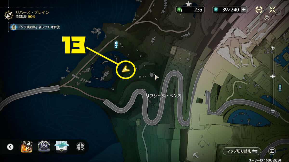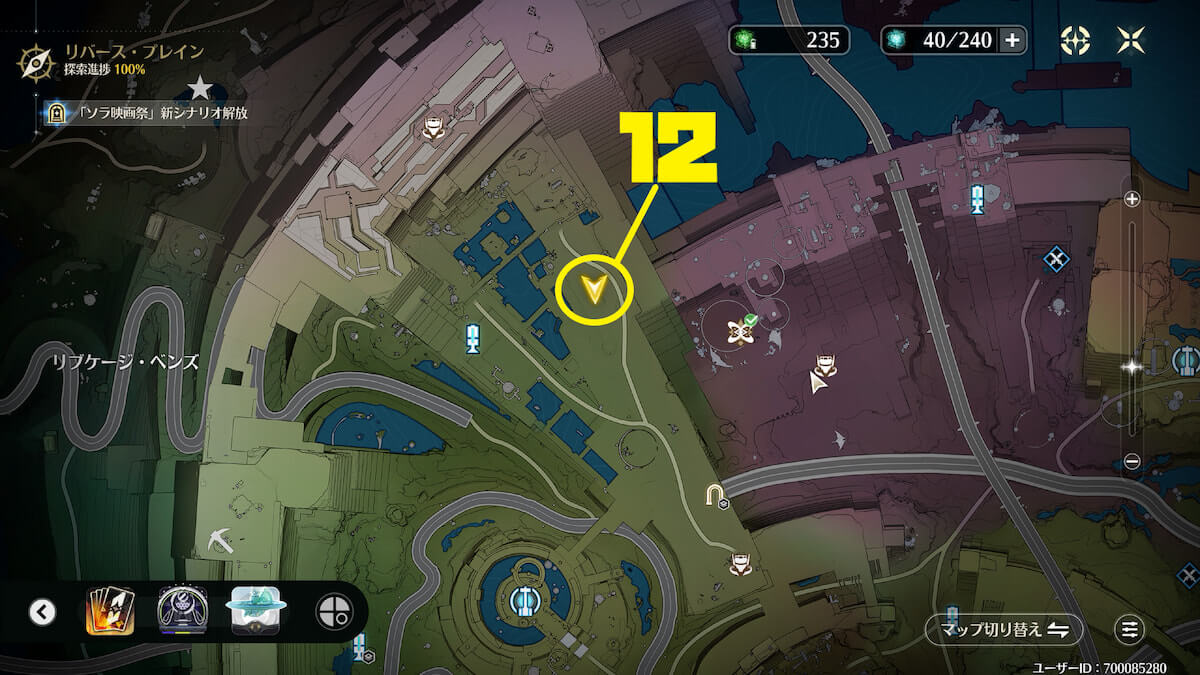 マップ画像12番の位置。「リバース・プレイン」北東の道路脇に痕跡の追跡があります。