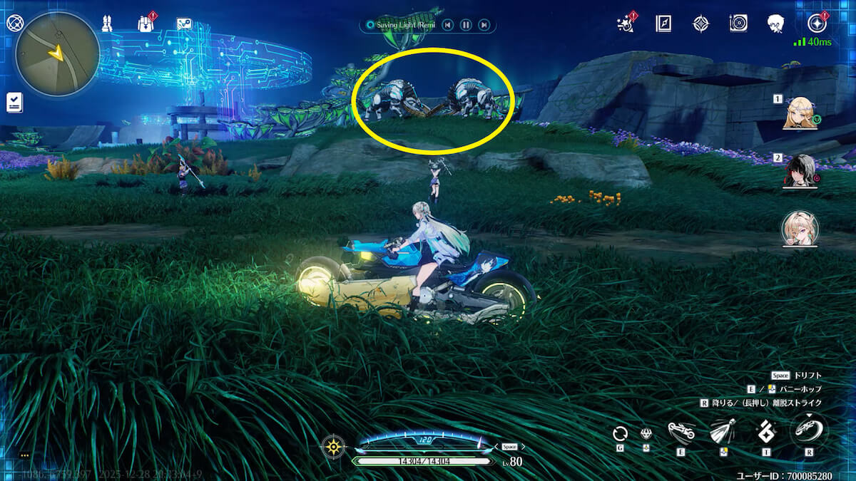 マップ画像2番の位置。「ドライブの機骸」に痕跡の追跡があります。