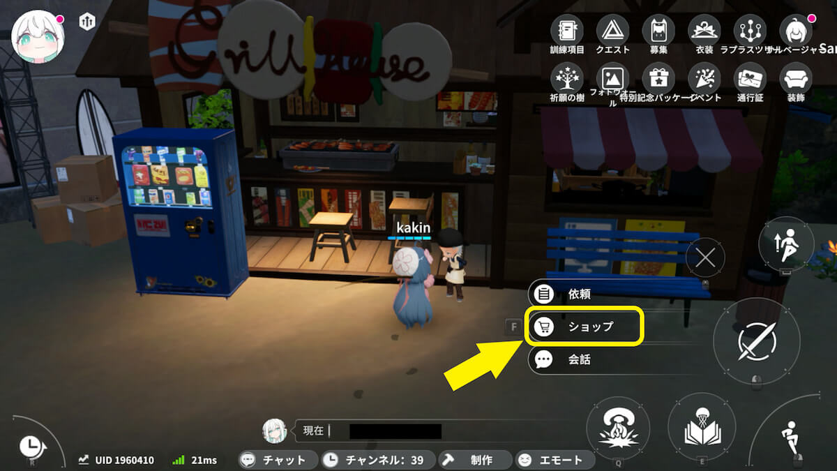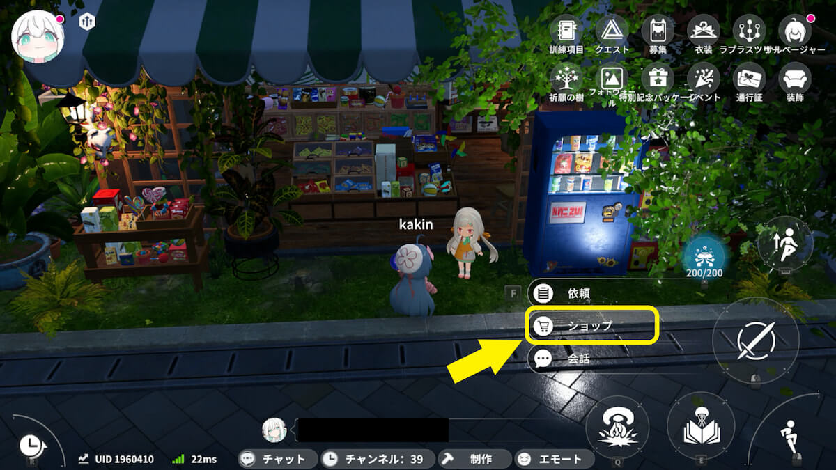 ガーデン・ロータの雑貨屋で釣り竿を購入できます。