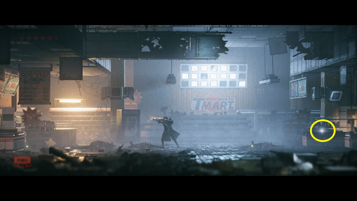サーチライトを躱しながら進み、店の前に出ると、アップグレード「ジェネティックプロフィール」を発見できます。