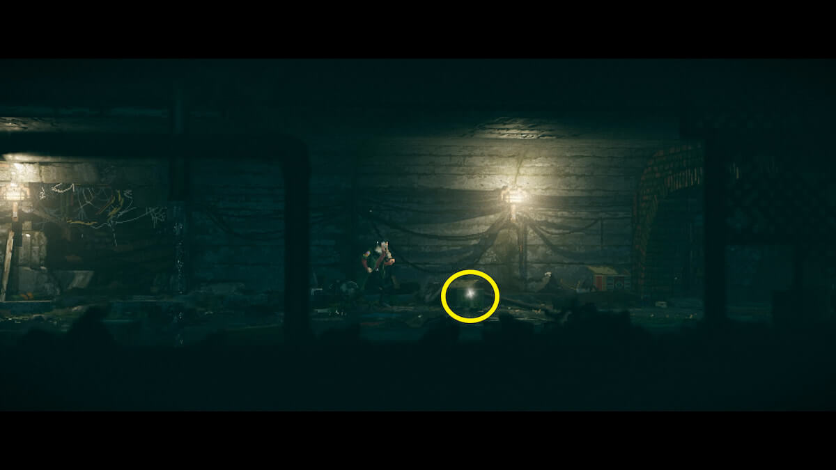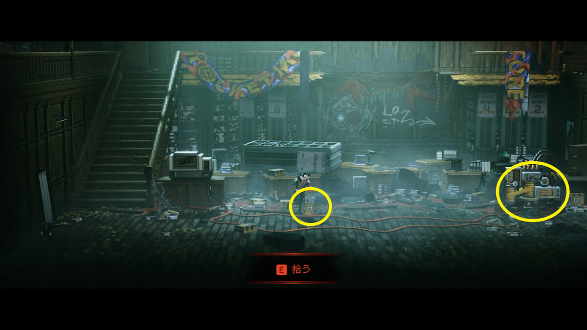 サーチライトを躱して建物に入り、1階にある携帯バッテリーを発電機に入れると、スキャン「携帯バッテリー」が追加されます。
