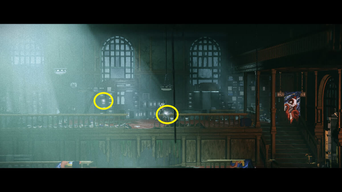 1階の端末で足場を動かして右側に進み、3階に上ると、スキャン「就任演説」「アーカイブしたポスター」を発見できます。