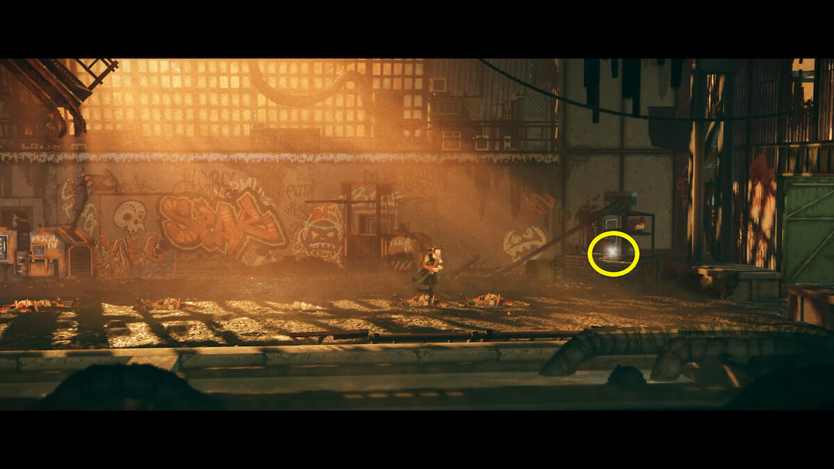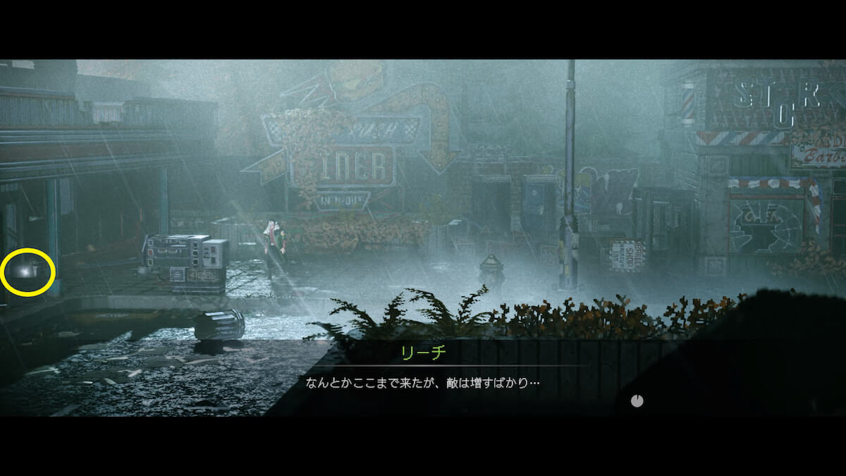 終点の道路を通り過ぎて右側に進むと、スキャン「別れの手紙」を発見できます。