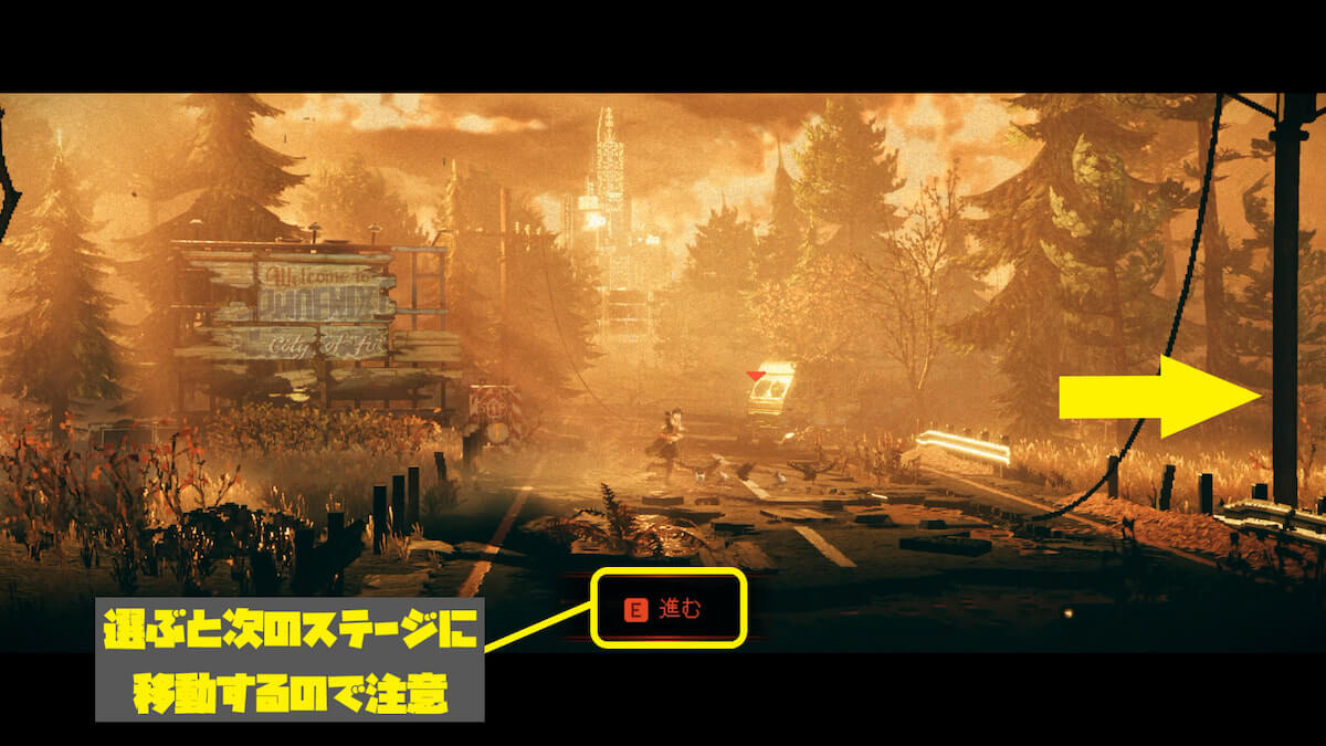道路で「進む」を選ぶと次のステージに移動するため、先に回収しましょう。