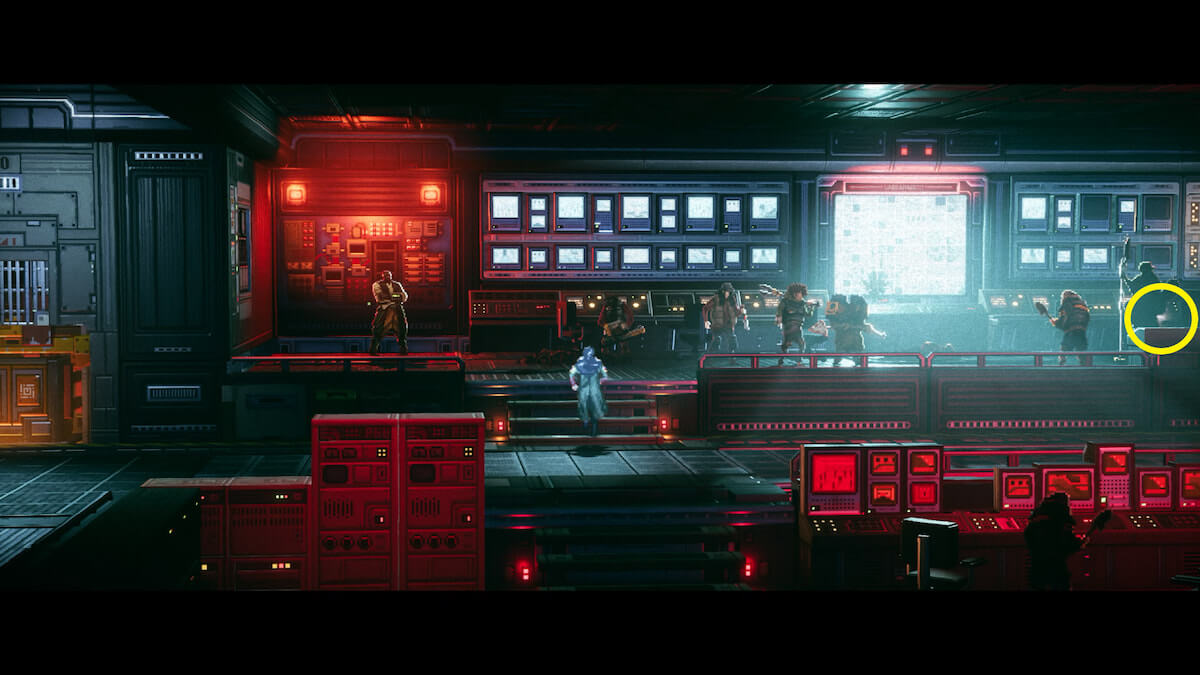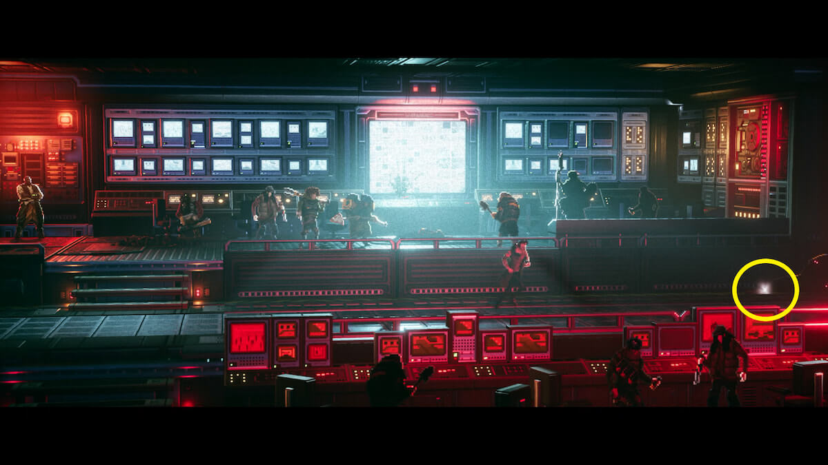 テンペストを通り過ぎて左に進み、端末を調べて全ての選択肢を確認すると、スキャン「メイトリアークのプロフィール」「社内政治」を発見できます。