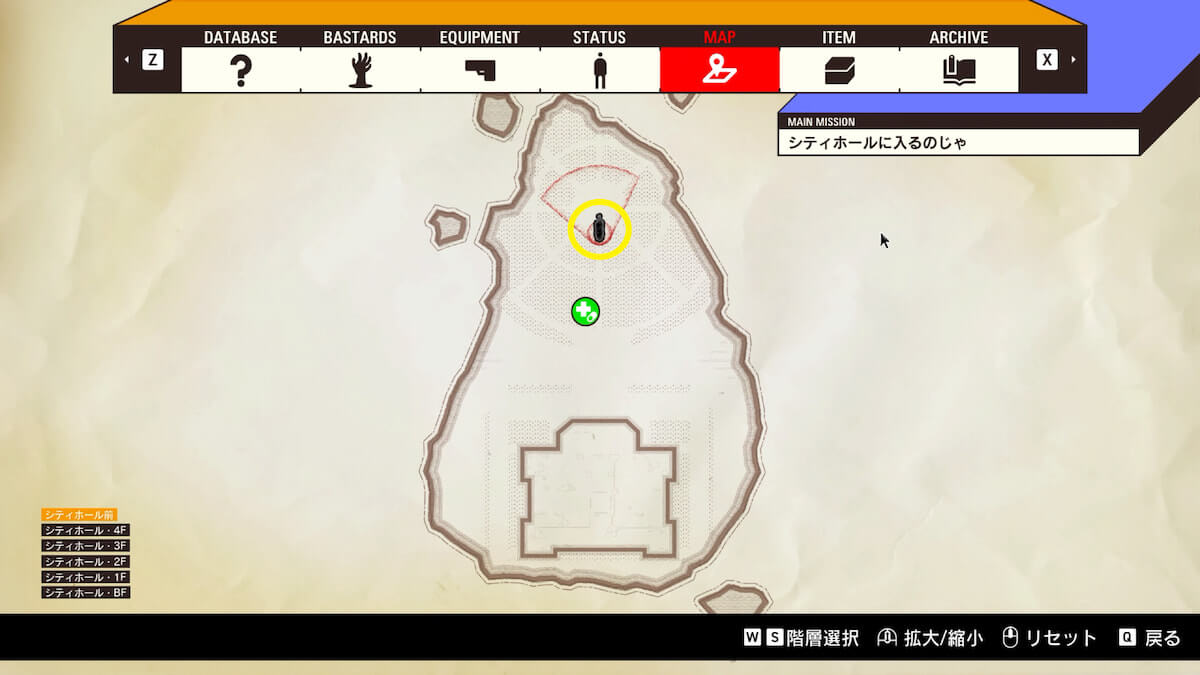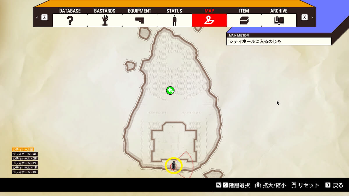 シティホール1F南西・南東の階段でBFに移動すると、中央の路地でバッヂ「看護師の慈悲」を発見できます。