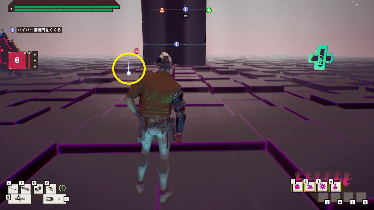 亜空間ヒルズ・最下層の東側で、バッヂ「空飛ぶエメラルド」を発見できます。