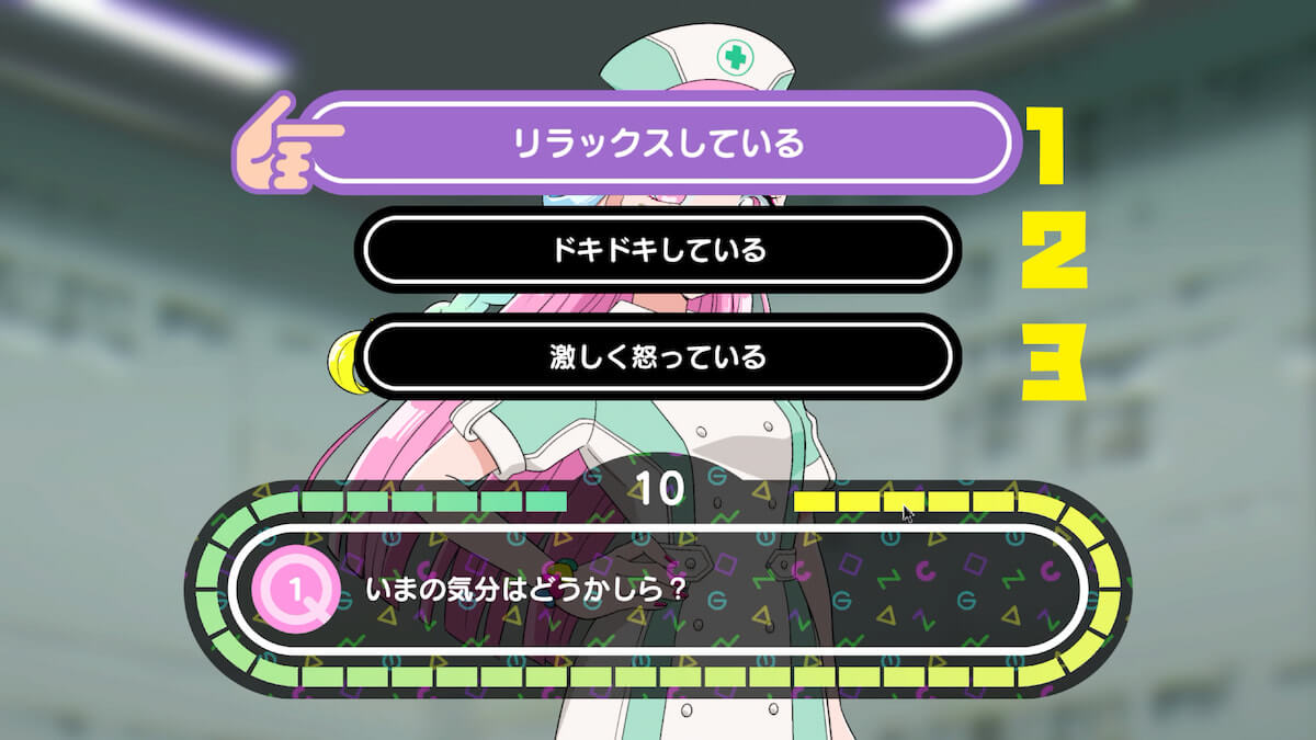 艦内にいるワーストピンクに話しかけて「診察してほしい」を選ぶと質問が始まります。