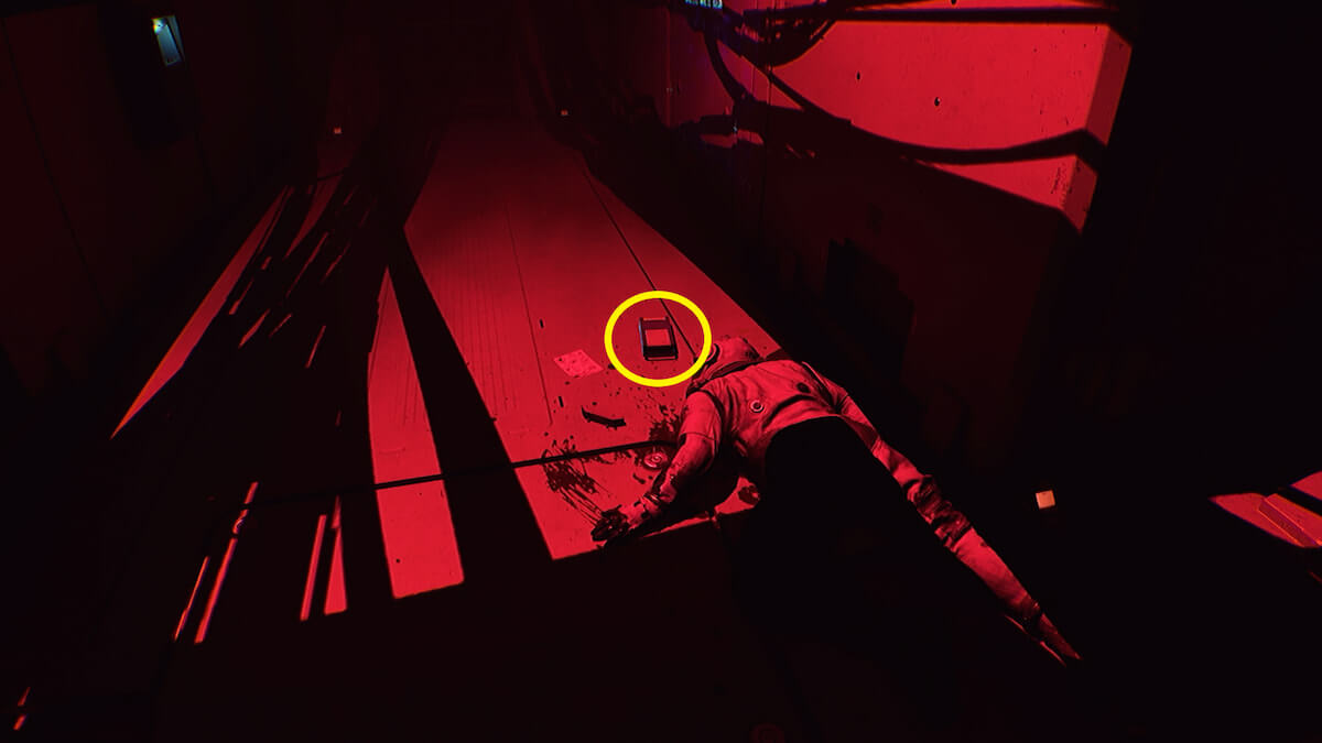 開始地点の廊下で、遺体のそばにある録音を確認します。