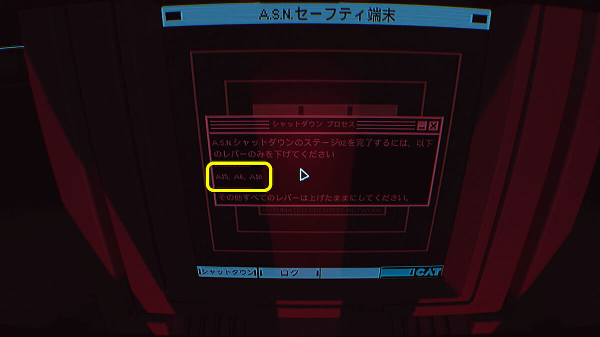 広間の中央に移動し、端末に表示されていたレバーを調べましょう。