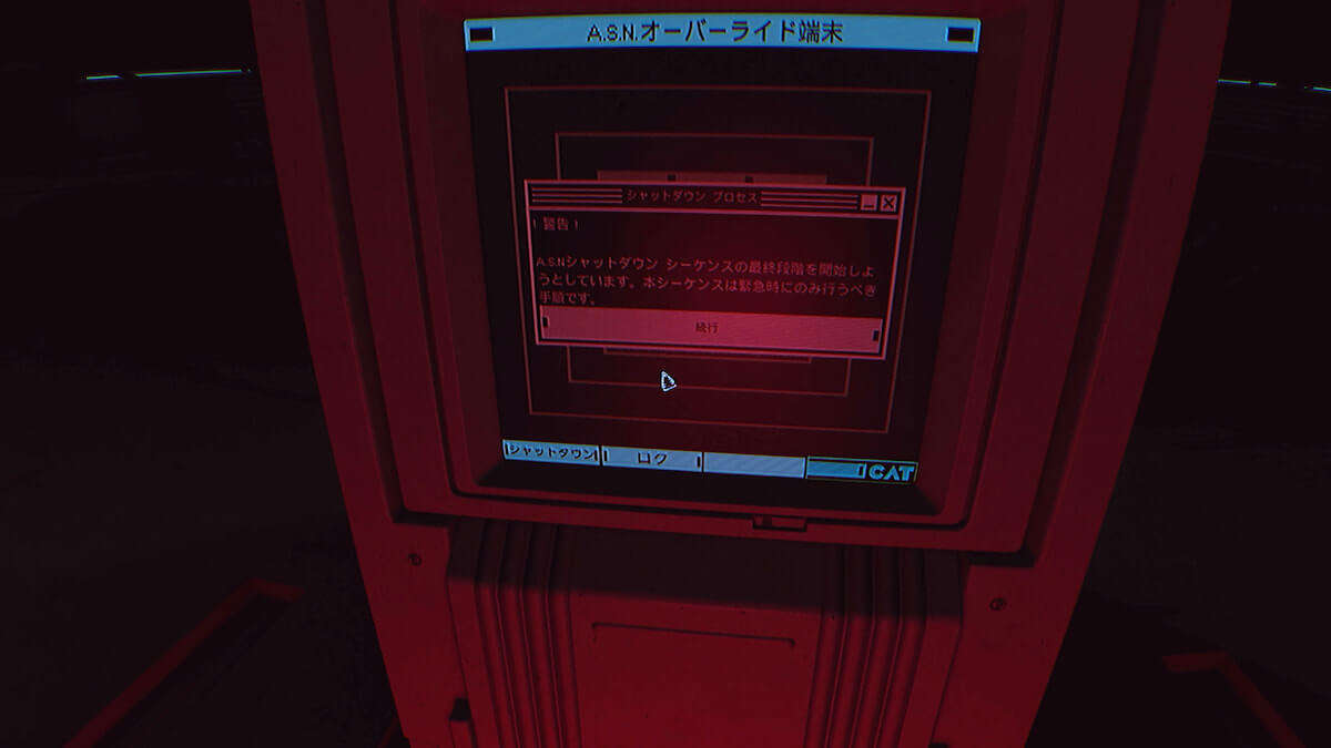 手動解除スイッチを調べた後、広間の中央に出現するC.O.R.E.にCAT攻撃を当てます。