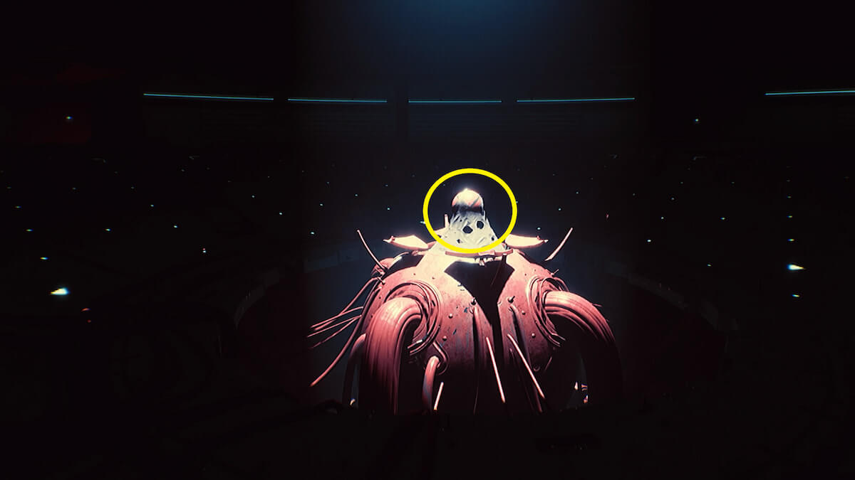 すり鉢状の広間に着いたら、赤い光が漏れている端末を調べます。