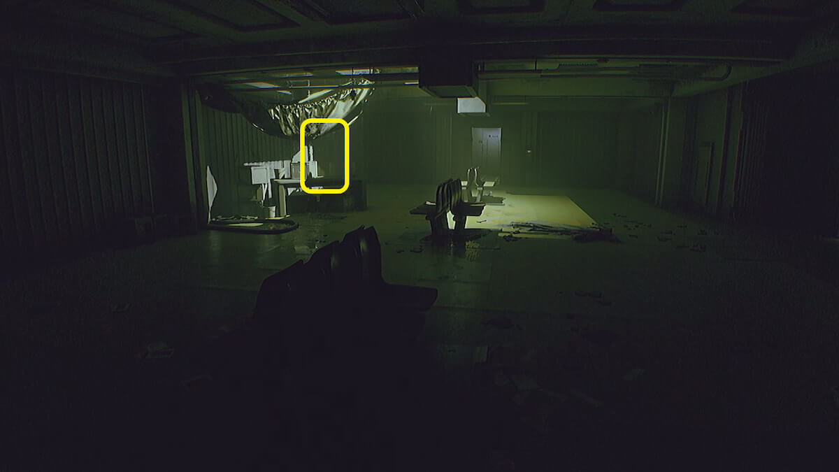 遺体がある広間から右の部屋に入り、通気口へ進みます。