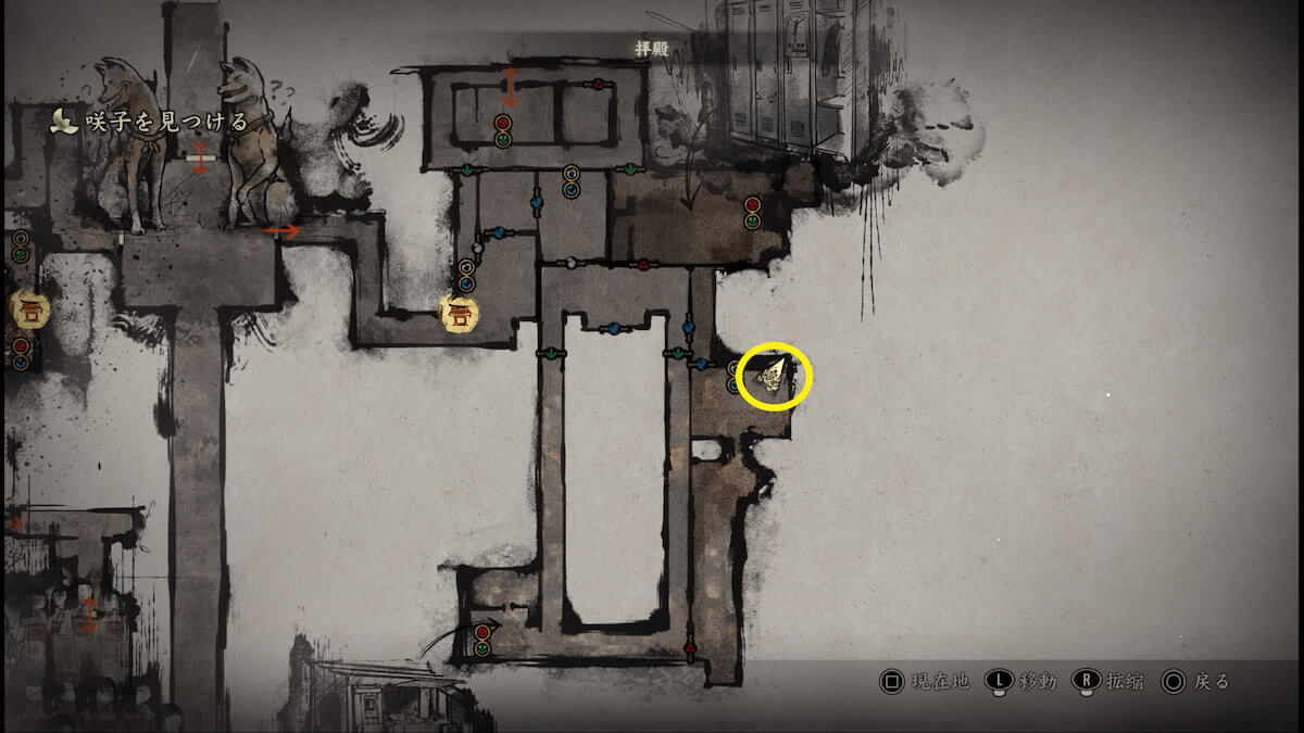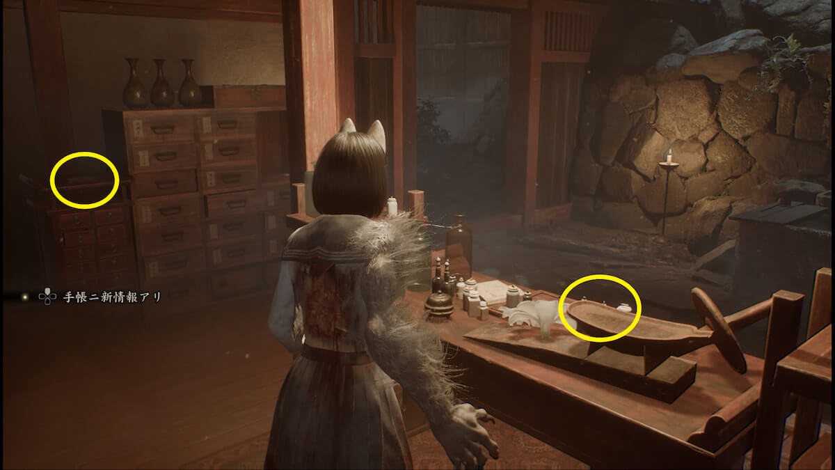 マップ東側に入ったら、最初の祠がある部屋で文書「咲子の日記(4)」を入手できます。