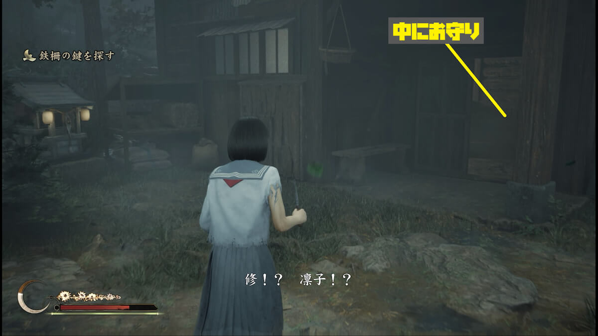 マップ南西の祠に着いたら、横の小屋でお守り「ヤギ」を入手できます。