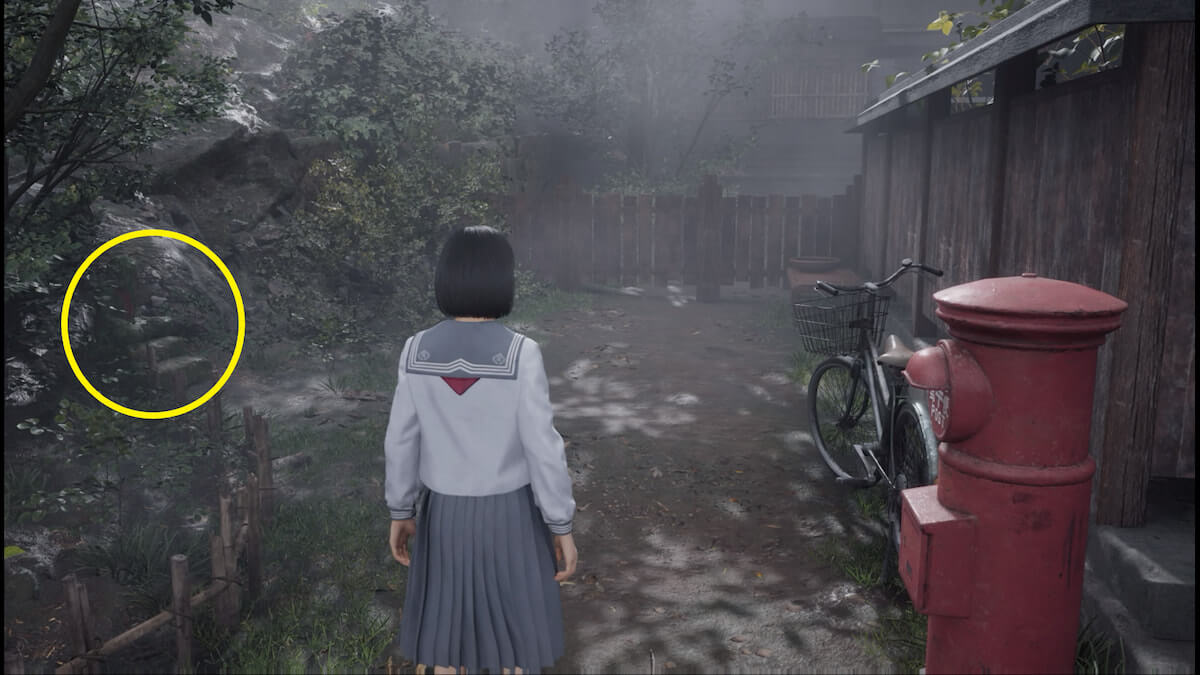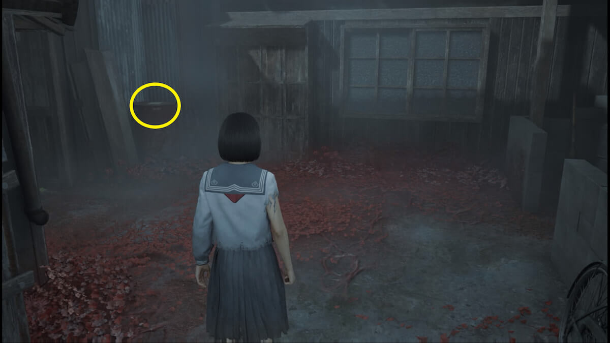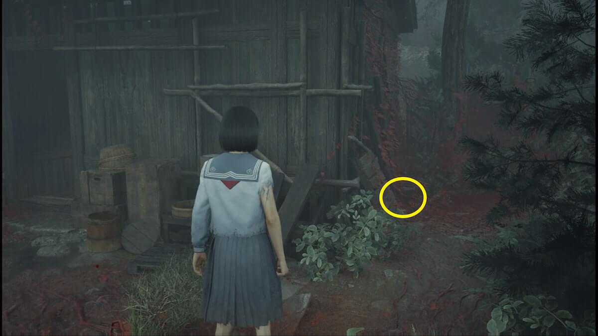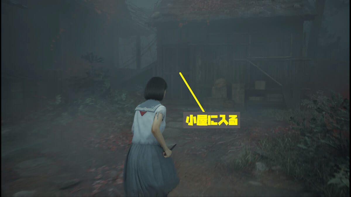 修の家に着いたら、建物の裏手に回って小屋に入りましょう。