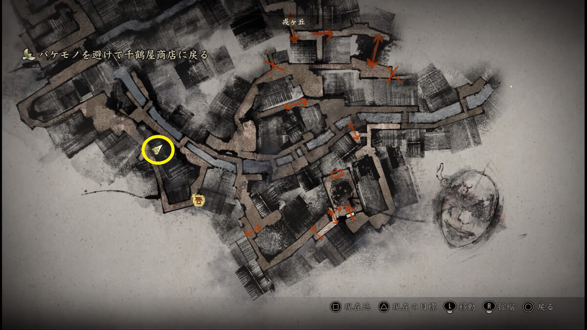 目標「バケモノを避けて千鶴屋商店に戻る」