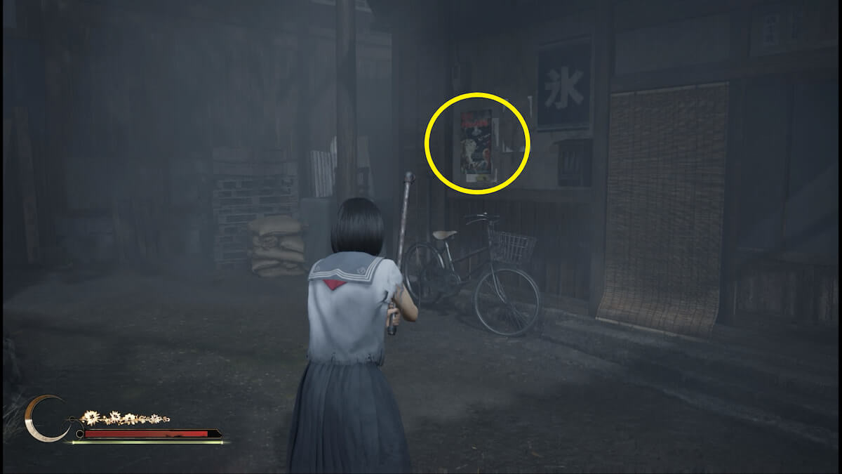 イベントで出現する敵を倒した後、マップ南東の路地で能力強化アイテム「祈願絵馬」を入手できます。