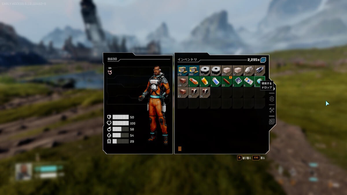 アイテムを使用したい場合は、「Tab」キーでインベントリを開き、アイテムにカーソルを合わせて「拡張」を押し、「使用」を選択します。