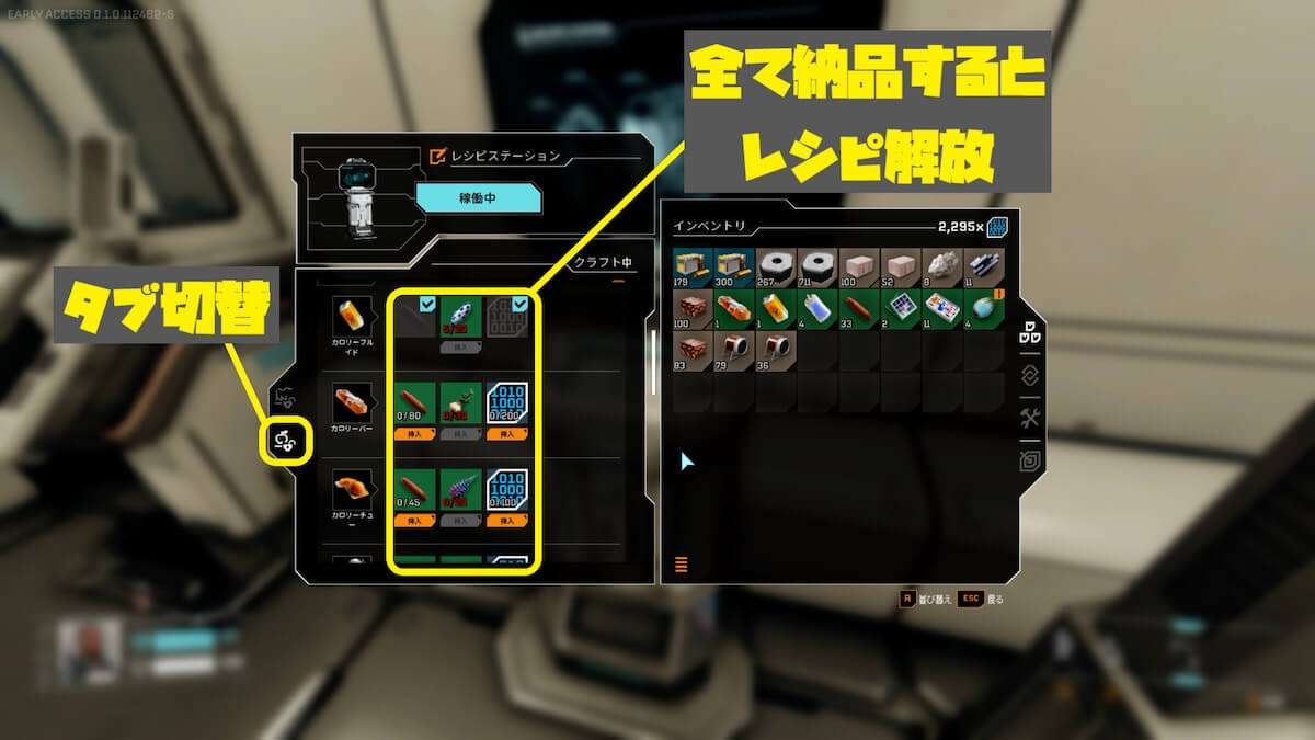 居住地に設置できる「レシピステーション」でアイテムのレシピを解放できます。