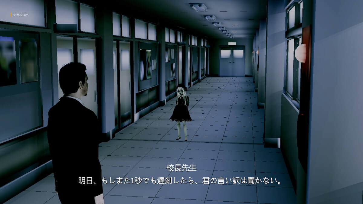 ストーリーで学校の2B教室に入り、回想シーンを進めると校長と会話が発生します。