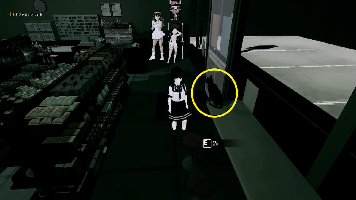 自動販売機の下にある鍵を回収した後、コンビニの中にいる猫を調べると、実績を獲得できます。
