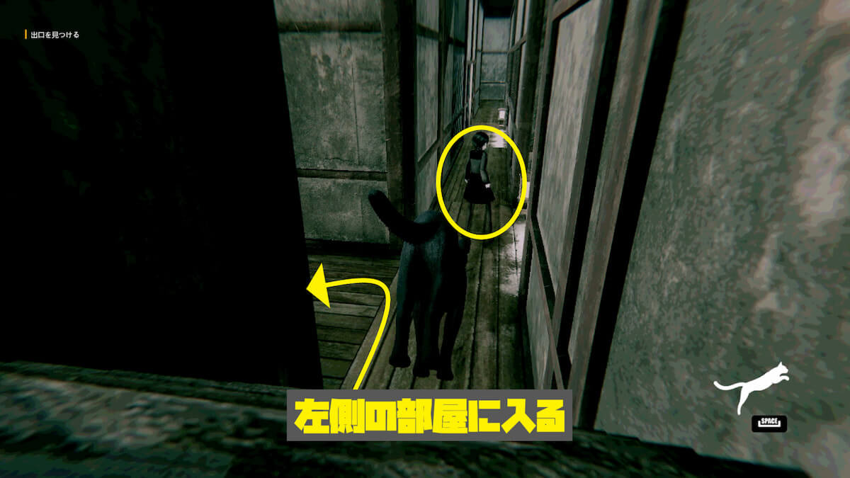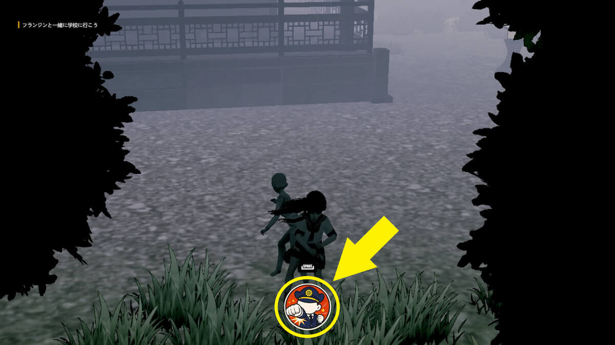 後半の猫操作パートを道なりに進むと、正面にいじめっ子が出現します。