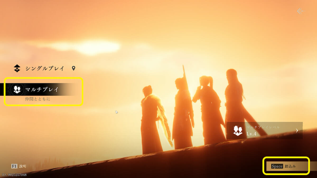 メニュー上部の「シングルプレイ」を押して「マルチプレイ」に切り替え、「踏込み」を選ぶとマルチプレイが開始されます。