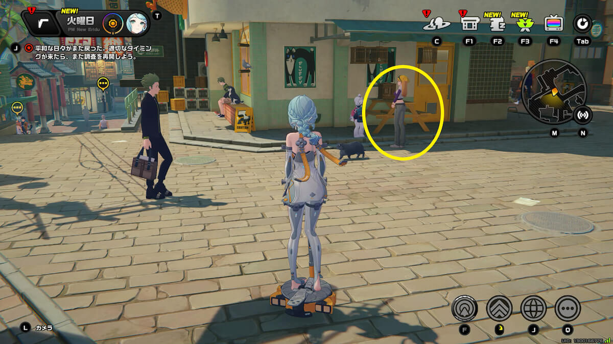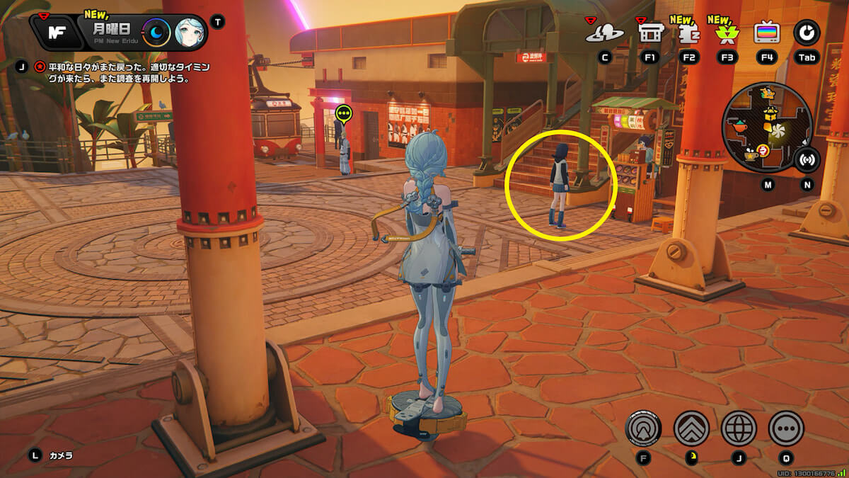 マップ画像5番の位置。同じ場所にいる「春実」と「秋華」に話しかけると、アチーブメントを獲得できます。