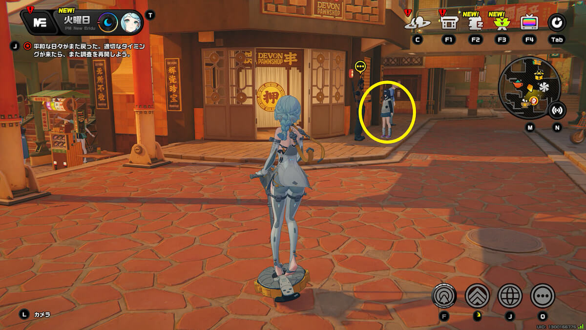 マップ画像2番の位置。「徳豊質店」の前に「秋華」が出現します。