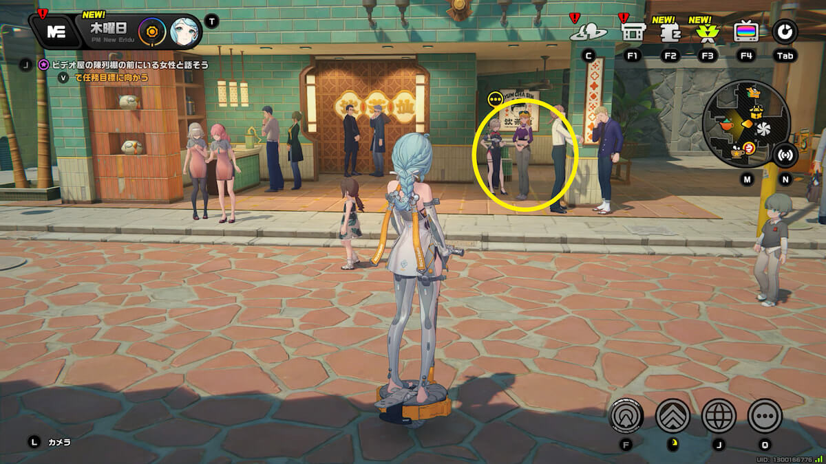 マップ画像3番の位置。「良い品屋」の前に「春実」が出現します。