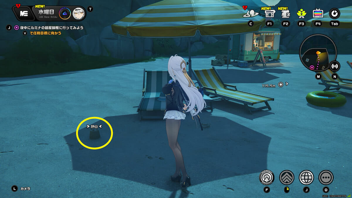 (深夜)浜辺にある「砂山」を調べると獲得できます。