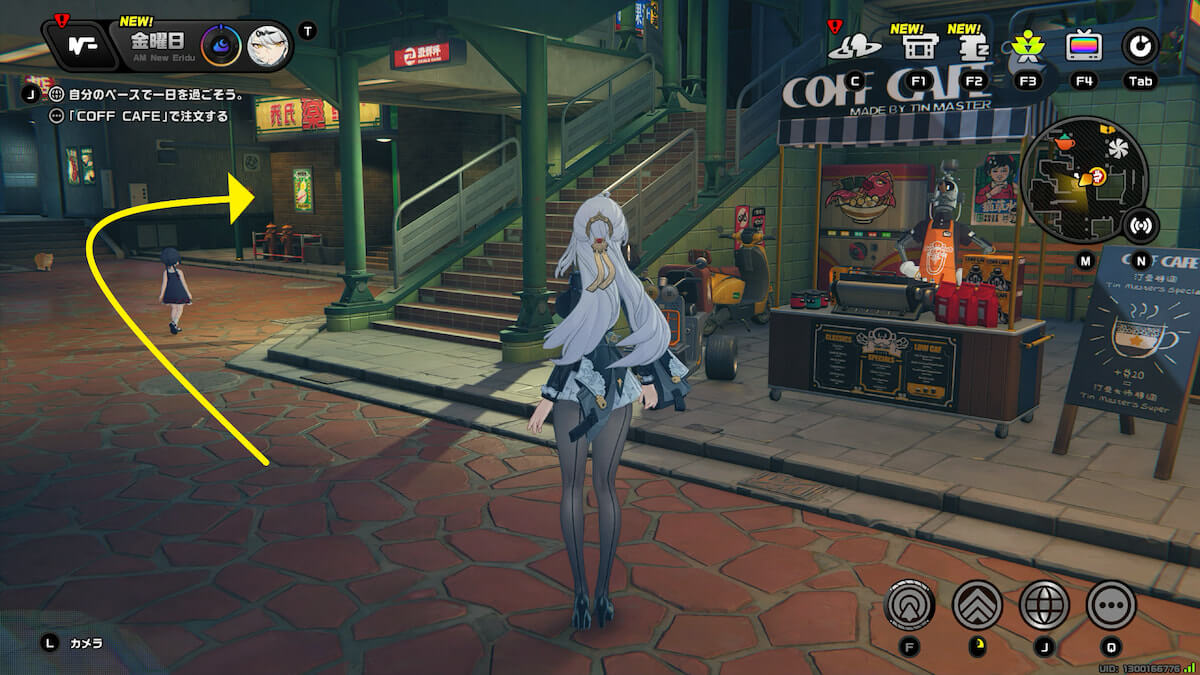 (昼)ティンズコーヒーから左の路地に入って階段を下り、「名蛋偵」に話しかけると獲得できます。