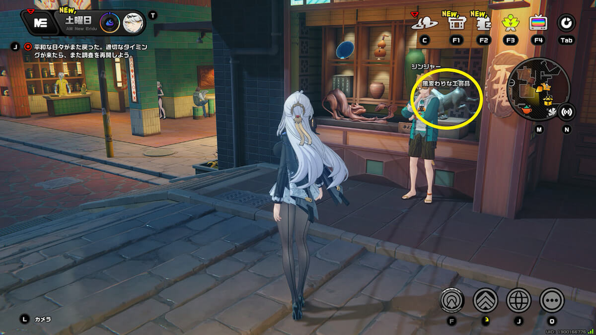 (深夜)飲茶仙の横にある建物で「風変わりな工芸品」を調べると獲得できます。