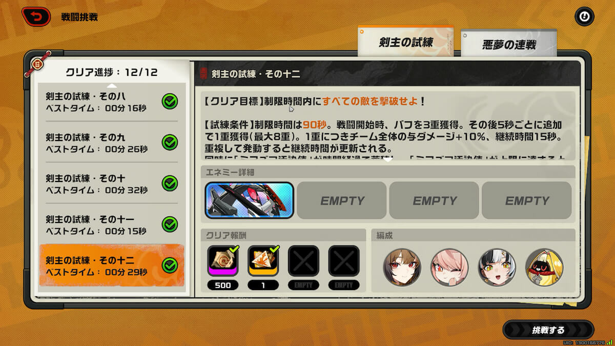 「剣主の試練」と「悪夢の連戦」を全てクリアすると獲得できます。